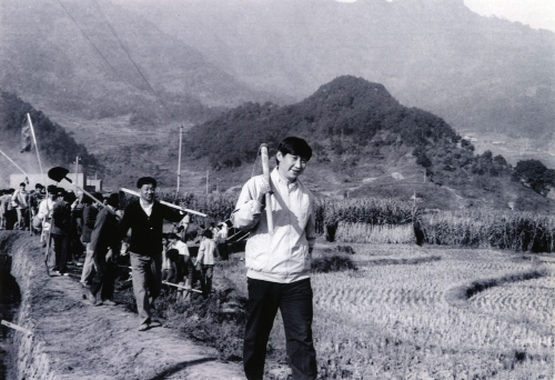 ↑1989年12月2日,中共寧德地委書(shū)記習(xí)近平同志帶領(lǐng)地直機(jī)關(guān)千余名干部到寧德縣南漈水利工地參加清溝排障修整水渠勞動(dòng)。
