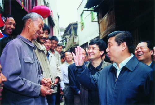 ↑2002年4月8日,習(xí)近平在南平邵武市和平古鎮(zhèn)考察。